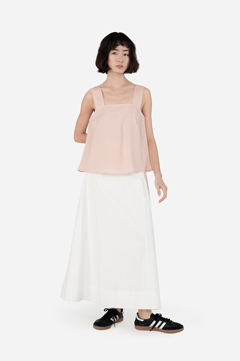 Another one of the essentials that forms a clean co-ord set with the Watson Pants. This cotton-linen top has a pure cotton lining, straight neckline, thick shoulder straps with slight curvature and an A-line silhouette that works for all. Quileen is finished with a side concealed zip and presents itself as a casual yet polished piece to go about your day in.