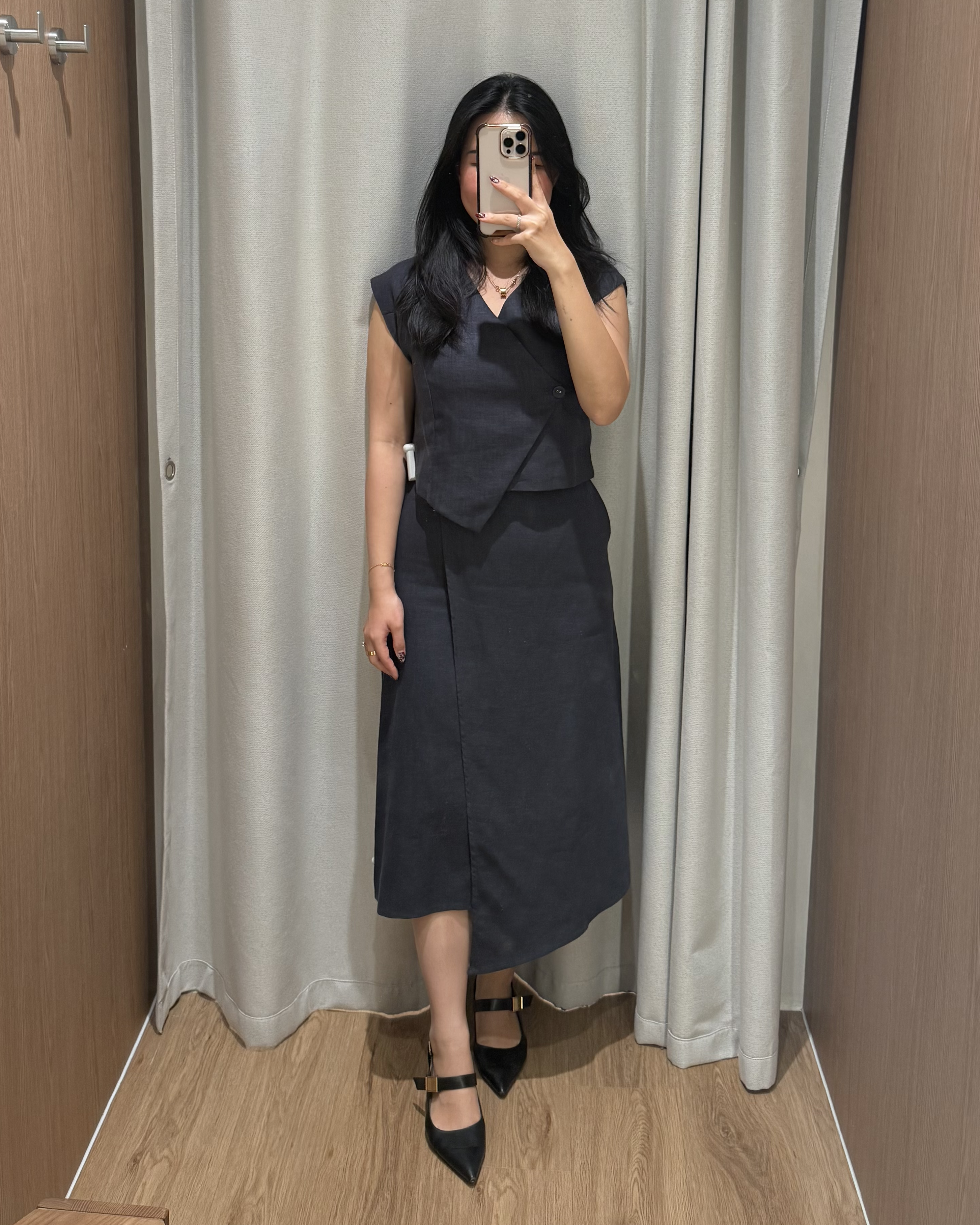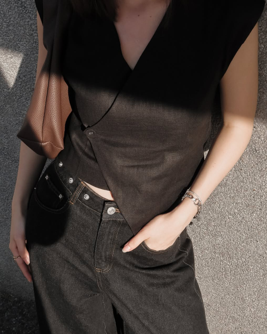 Drawing inspiration from the Japanese concept of asymmetry, Haku leaves a lasting impression with angular lines and clean aesthetics. Constructed from cotton-linen, this piece comes with a pure cotton lining and is designed as a versatile top-vest to style as you need. It features cap sleeves, an overlap V-neckline fastened with a singular fabric button and is finished with a short slit at the back. Haku forms a modern, polished co-ord set with the Hayami Skirt.