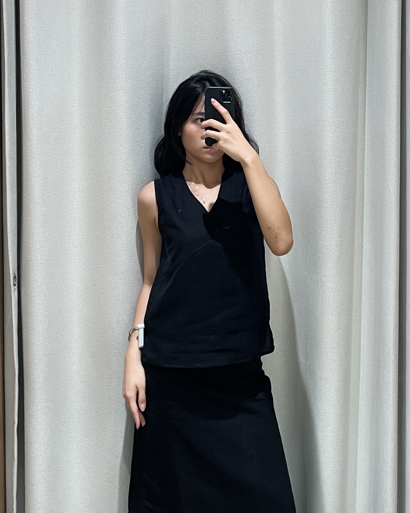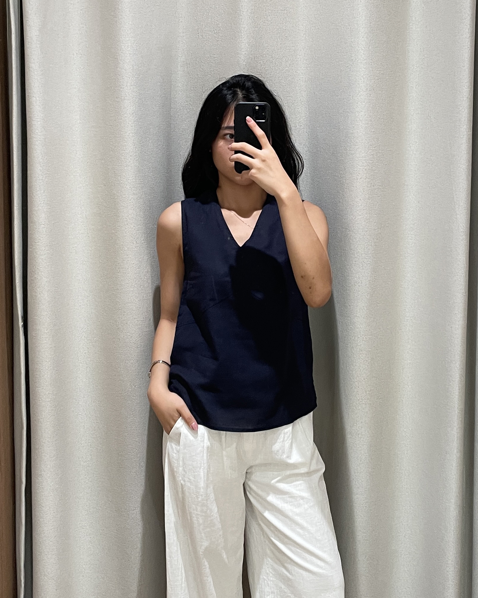 Presenting laidback cotton-linen co-ords with the Stryner or Watson Pants, Xohi Top is a breezy piece to add to your collection. With a pure cotton lining, this sleeveless top solely features a V-neckline and geometric detailing at the front resembling the Flitz Dress. Its casual nature makes it a great sleeveless, oversized top to wear loosely with any jeans or pants you own.