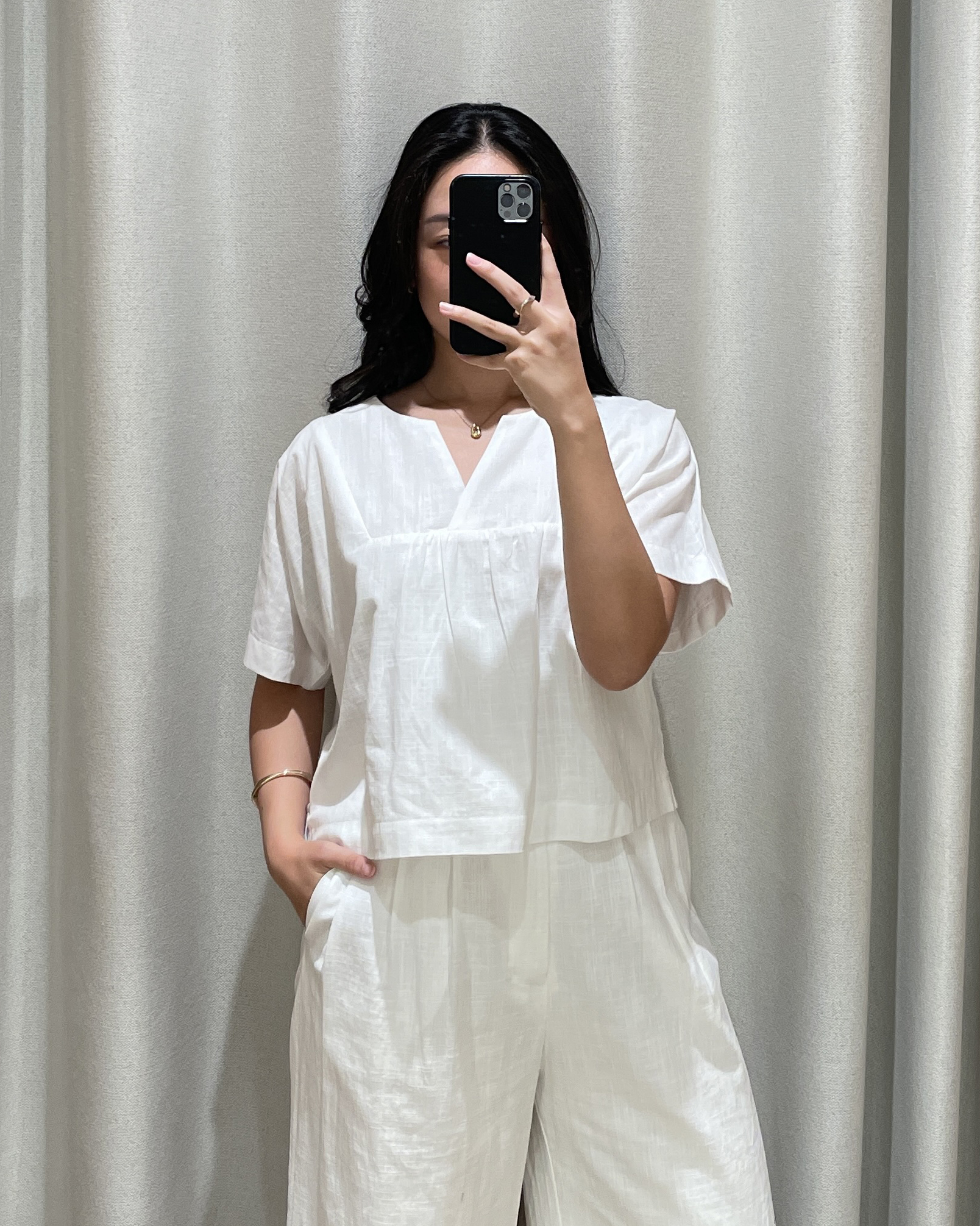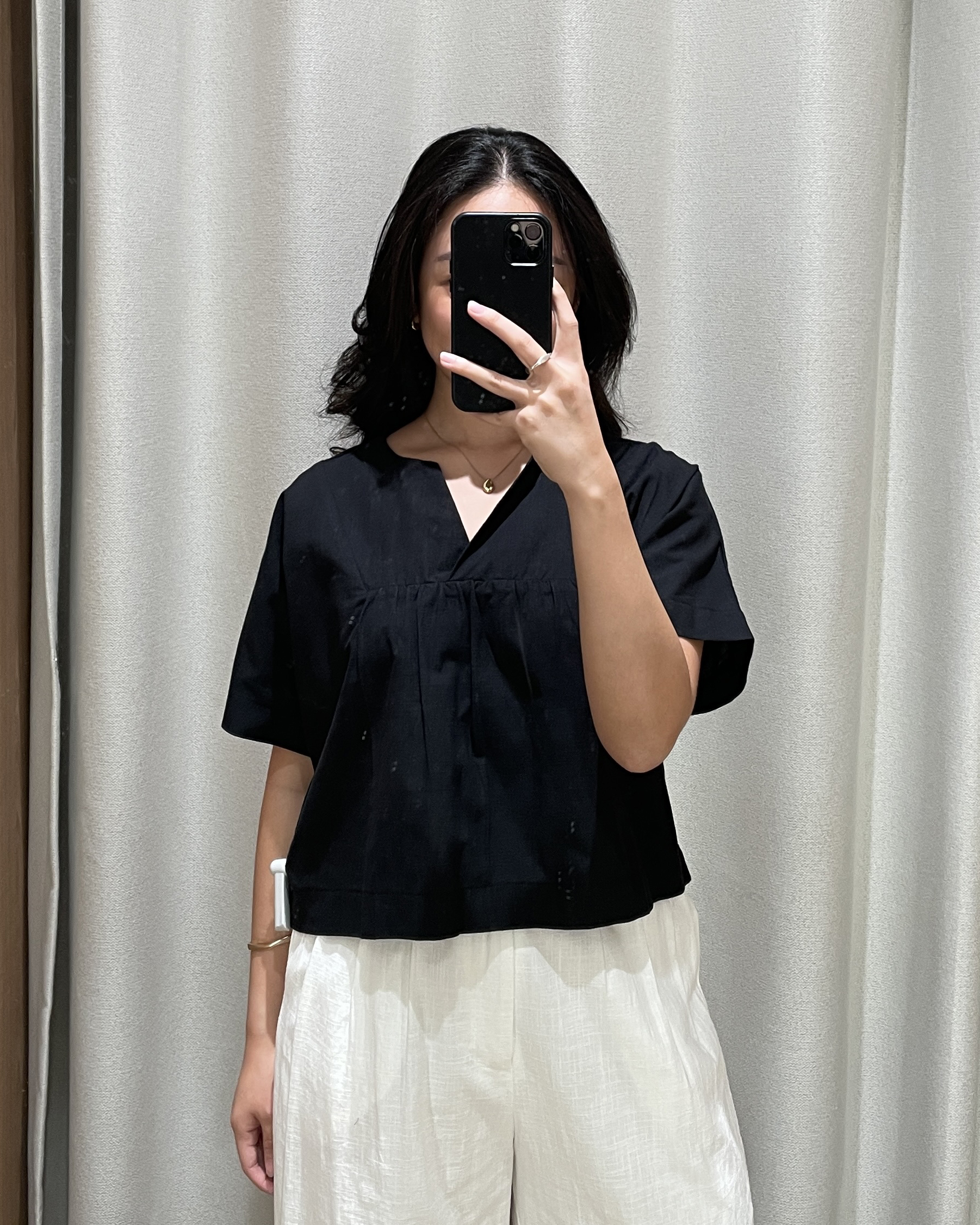 With a less conventional neckline like that, it would be a waste not to bring it back. Adding length to the Cambria Blouse, this piece is brought back in tencel blend with a partial pure cotton lining and at a regular length for a more comfortable wear. Yulia features a soft, feminine look with a round Y-neckline leading down to a gathered front detail and kimono sleeves. Fitted with a back concealed zip, it’s casual enough to pair with your favourite bottoms for your errand runs, making it an easy essential in your closet.