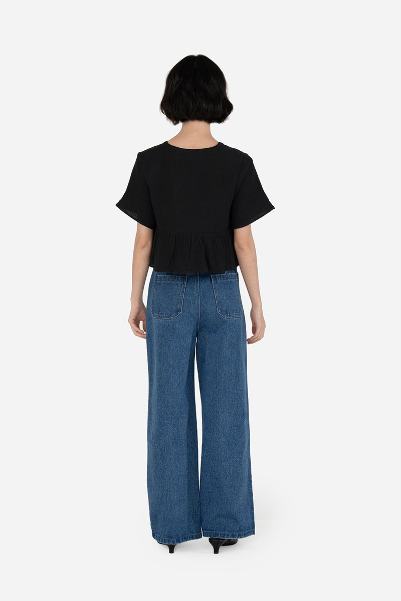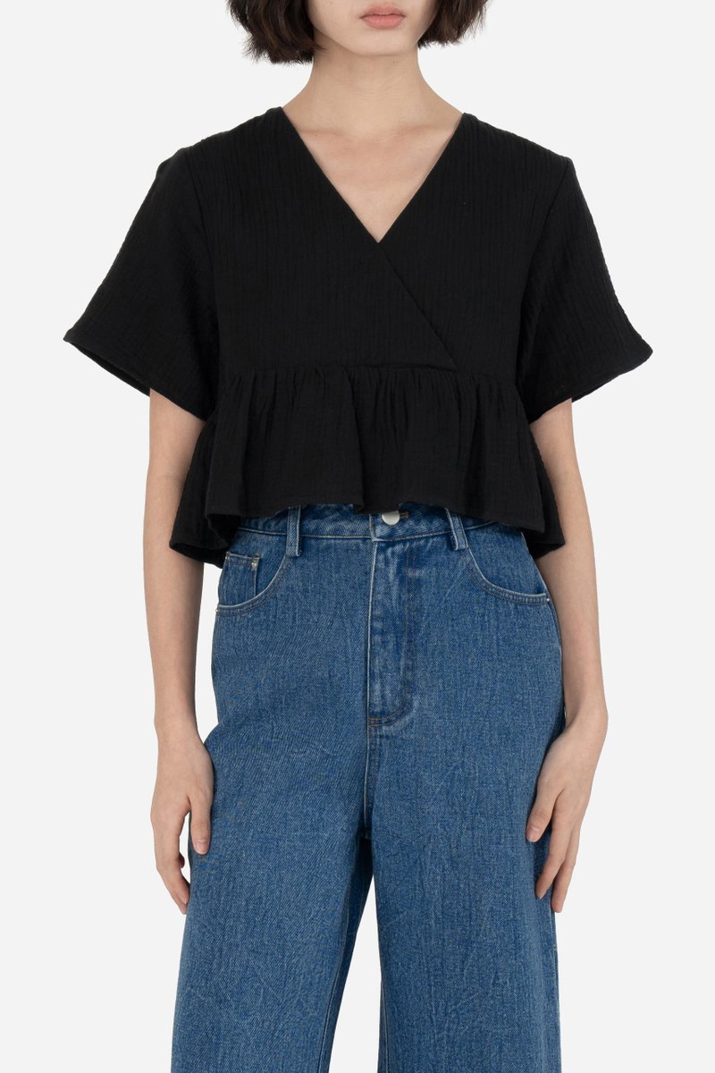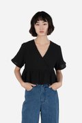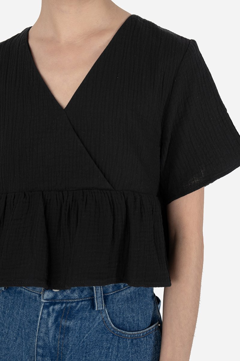 Taking on a similar design to the crowd favourite — Bindi Top, this piece was designed for those who prefer a sleeved option. Also crafted out of another comfortable, textured 100% cotton fabric, this fully-lined top features a faux wrap, V-neckline and ruffled underbust that delivers a loose fit yet flattering silhouette. Yunna is a simple, versatile piece that can elevate any outfit.