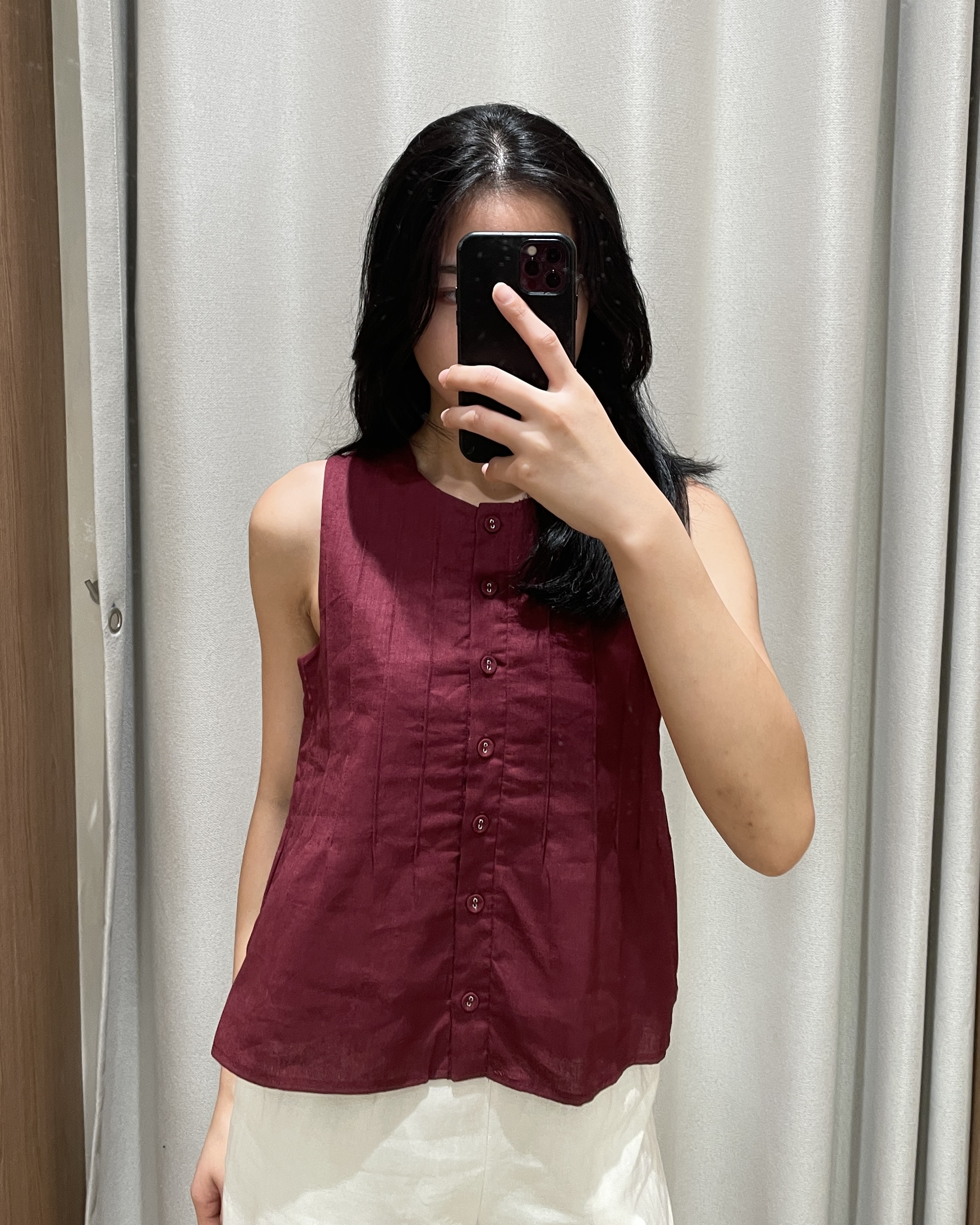 Freshen up your capsule wardrobe with the Zareen Top. Featuring a round neckline, this sleeveless piece comes with a functional button down with matching fabric buttons. The vertical pintuck detailing front and back leads into a slight flared silhouette, which effortlessly delivers a sculpted feel. Tapping into the same cotton-linen fabric and pure cotton lining used to construct the Delancy Dress, Zareen brings elevation to any simple fits, making it perfect for the classics, minimalists.