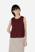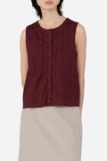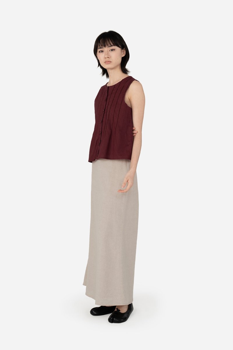 Freshen up your capsule wardrobe with the Zareen Top. Featuring a round neckline, this sleeveless piece comes with a functional button down with matching fabric buttons. The vertical pintuck detailing front and back leads into a slight flared silhouette, which effortlessly delivers a sculpted feel. Tapping into the same cotton-linen fabric and pure cotton lining used to construct the Delancy Dress, Zareen brings elevation to any simple fits, making it perfect for the classics, minimalists.