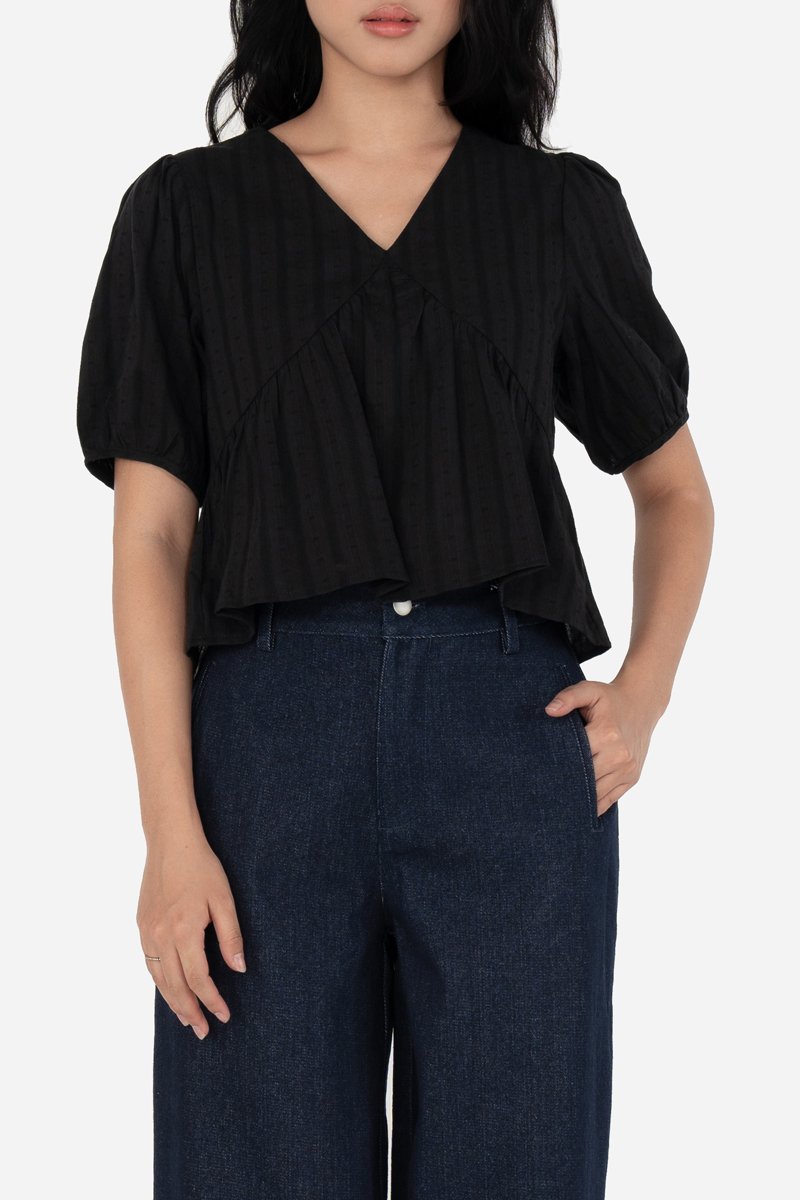 Swap out your old top with a wardrobe refresher like Zayrie. Crafted in 100% cotton embroidered fabric, this partially, pure cotton lined top exudes femininity with its V-neckline, empire seam bust line and non-elasticised puffed sleeves features. Completed with strategically placed gathers, Zayrie Blouse pairs well with any bottoms for a daintier look.