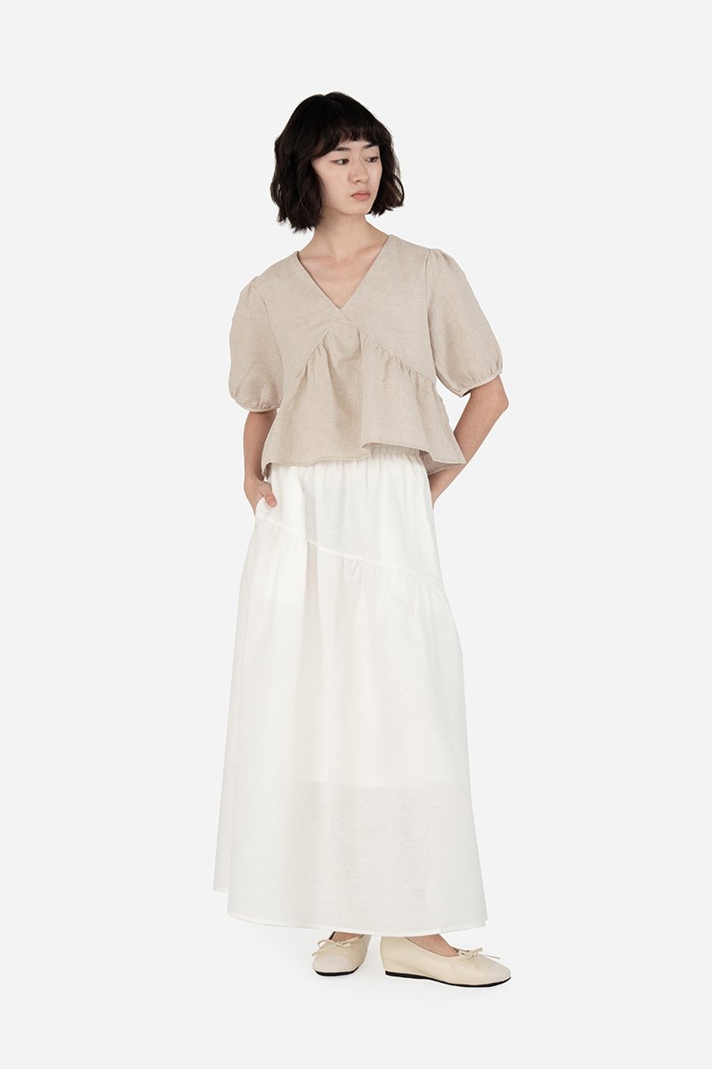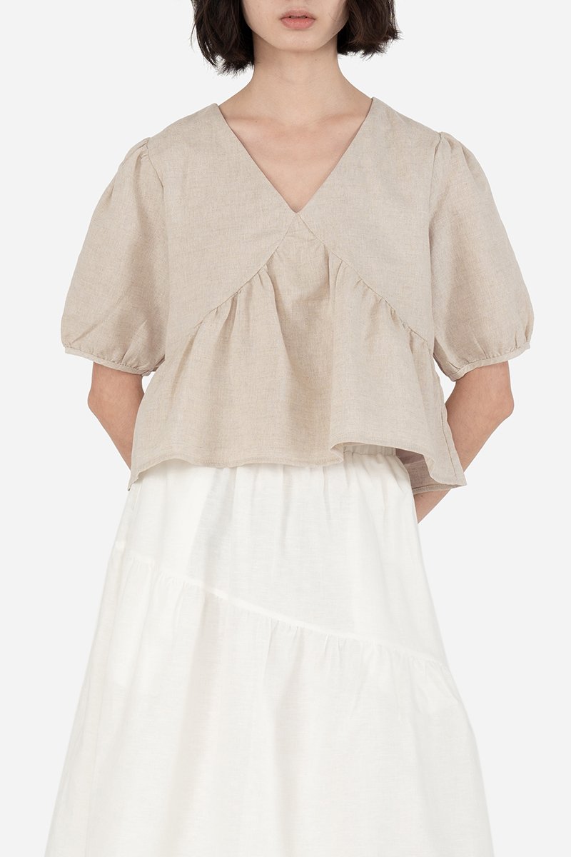 Swap out your old top with a wardrobe refresher like Zayrie. Crafted in the familiar cotton-linen fabric used for the crowd favourites Carmen Top and Zuka Dress, this partially, pure cotton lined top exudes femininity with its V-neckline, empire seam bust line and non-elasticised puffed sleeves features. Completed with strategically placed gathers, Zayrie Blouse pairs well with any bottoms for a daintier look.