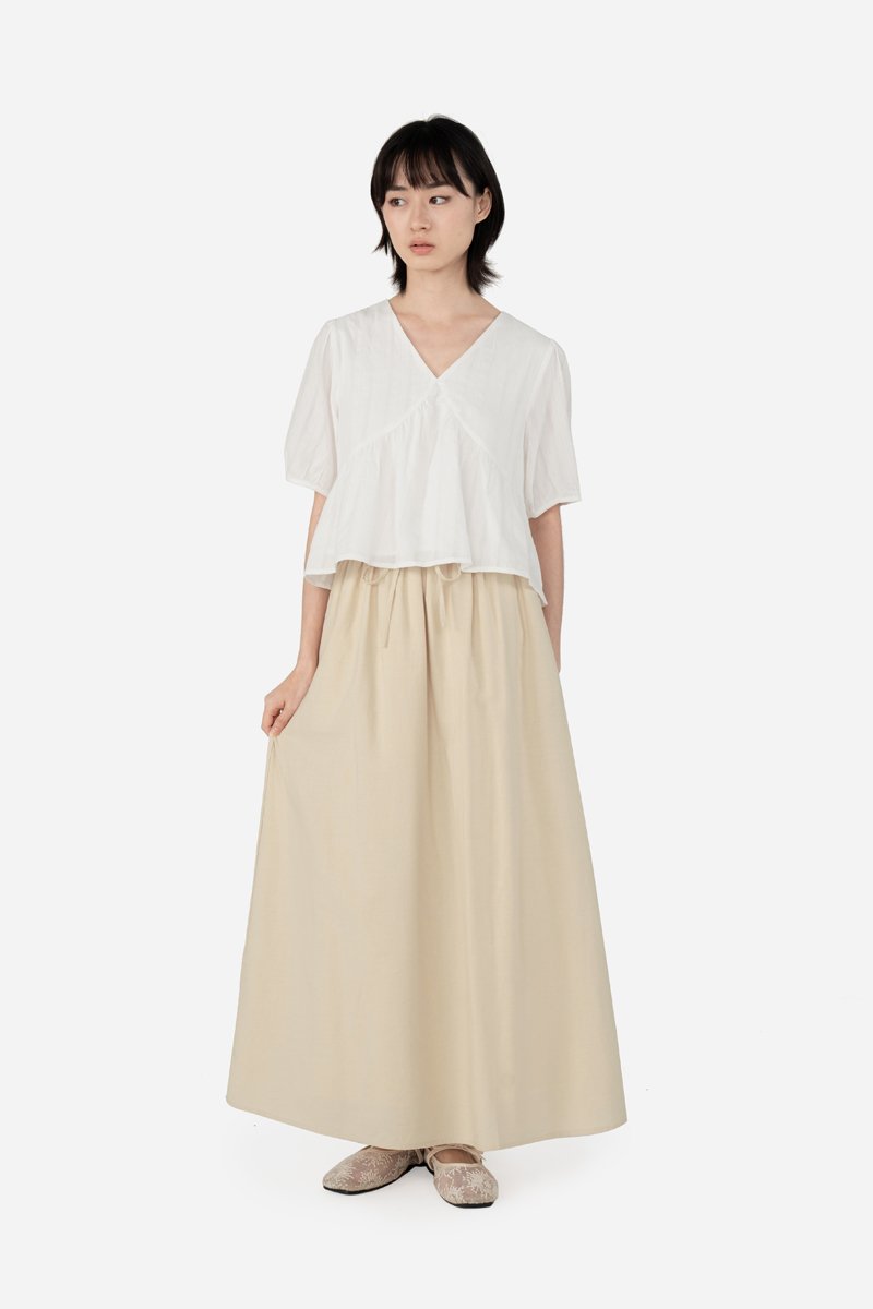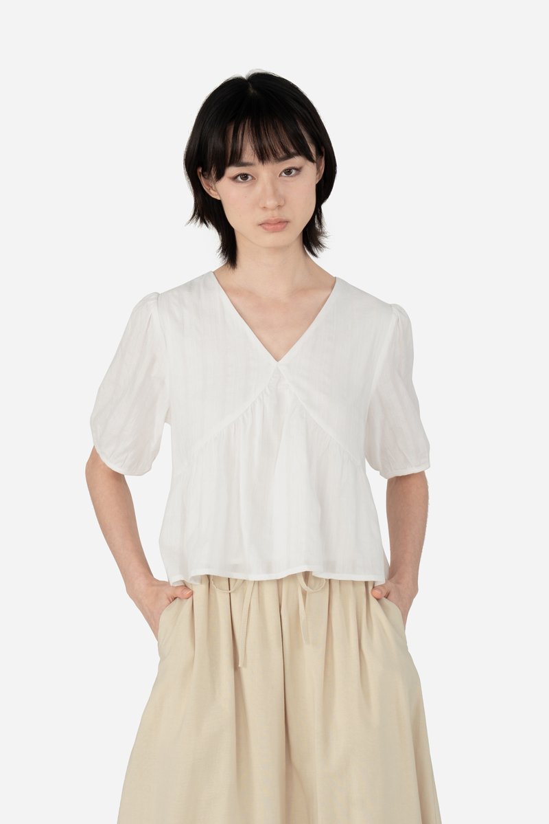 Swap out your old top with a wardrobe refresher like Zayrie. Crafted in 100% cotton embroidered fabric, this partially, pure cotton lined top exudes femininity with its V-neckline, empire seam bust line and non-elasticised puffed sleeves features. Completed with strategically placed gathers, Zayrie Blouse pairs well with any bottoms for a daintier look.
