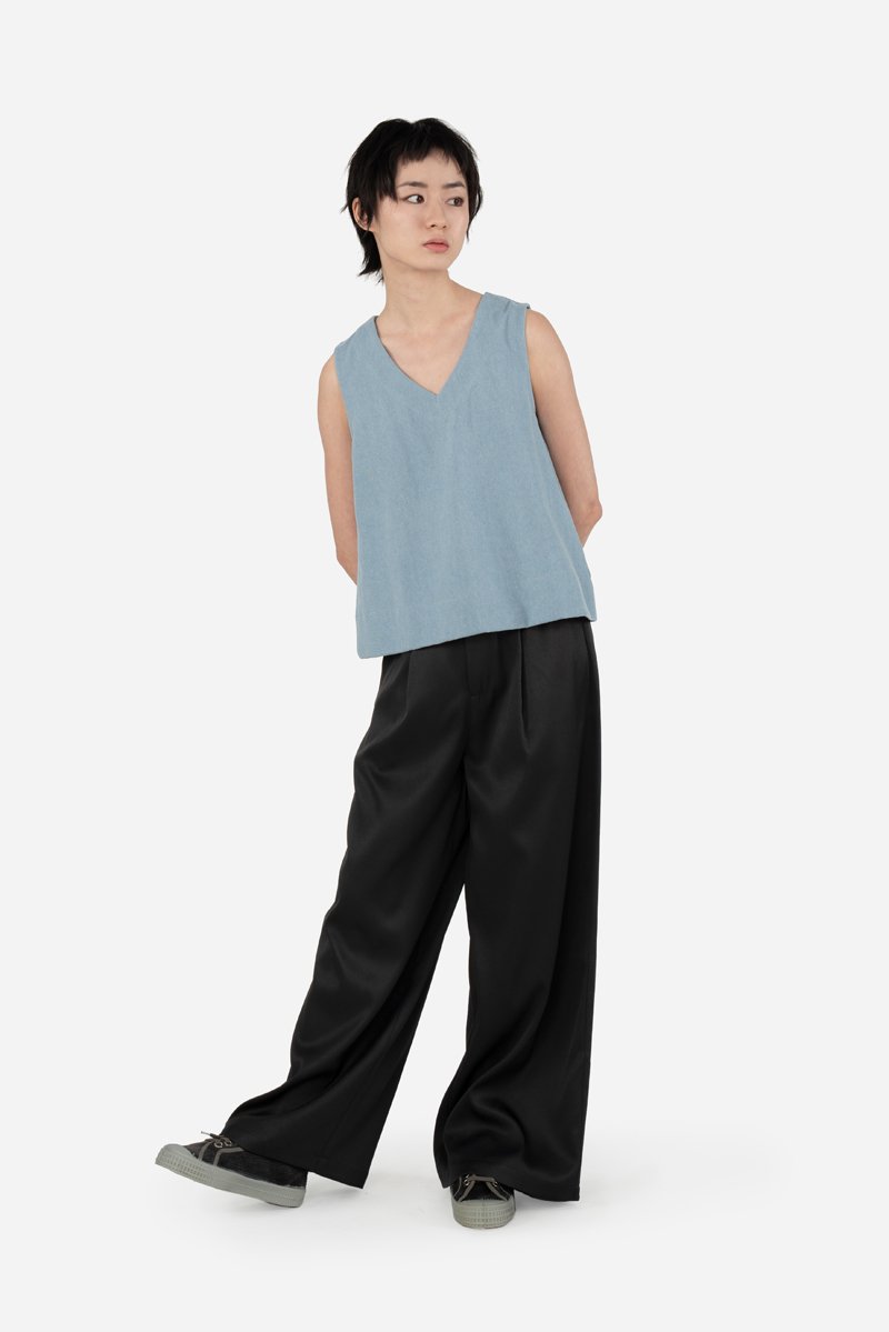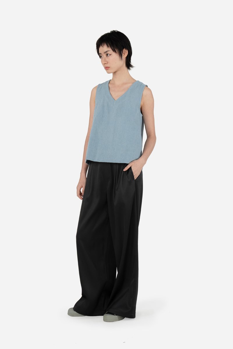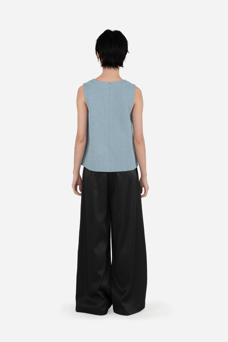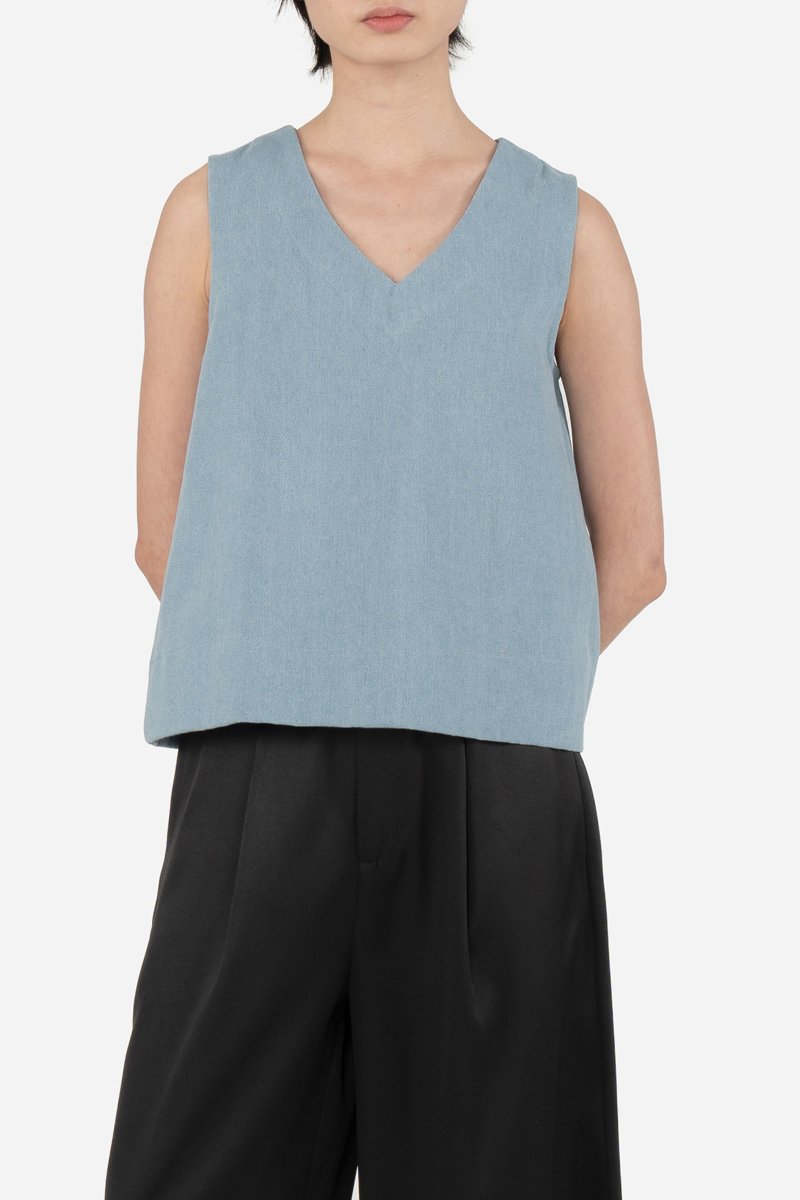 Dallas, a classic and effortless piece now reimagined in the denim version of our fan-favourite Corlene Top. Crafted from a cotton blend fabric and left unlined for a lighter, breathable feel, this top features the same thick-stitched V-neckline and hem detail that lends a clean, structured look. Finished with a concealed zip at the back, Dallas brings a slightly more casual touch in denim while remaining polished enough for everyday wear. Pair it easily with your favourite bottoms for a versatile, go-to outfit.